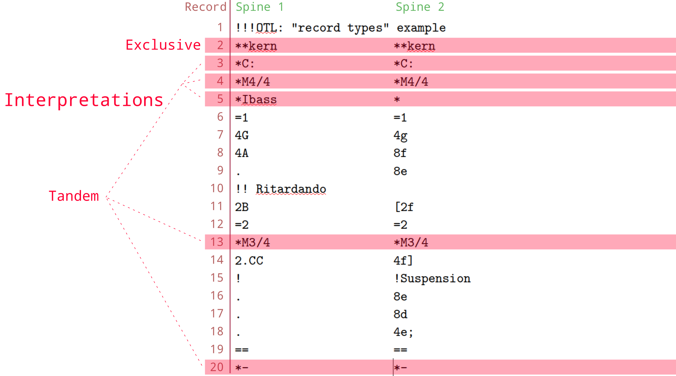 interpretation, used to encode music notation. Note that a humdrum file