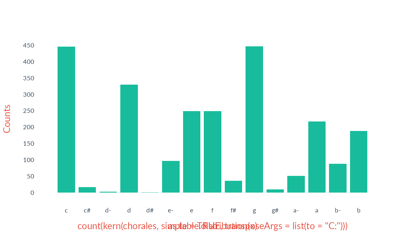 PitchAndTonality.RmdAs a computational musicology toolkit, humdrum\(_{\mathbb{R}}\)’s tools for analyzing and manipulating pitch data are just about the most important tools in the toolbox. For the most part, humdrum\(_{\mathbb{R}}\)’s pitch tools are focused on the Western system of tonality, and tools for representing pitches in a tonal context are the focus of this vignette—we also have standard tools for looking at pitch from a Western, 12-tone atonal setting as well.